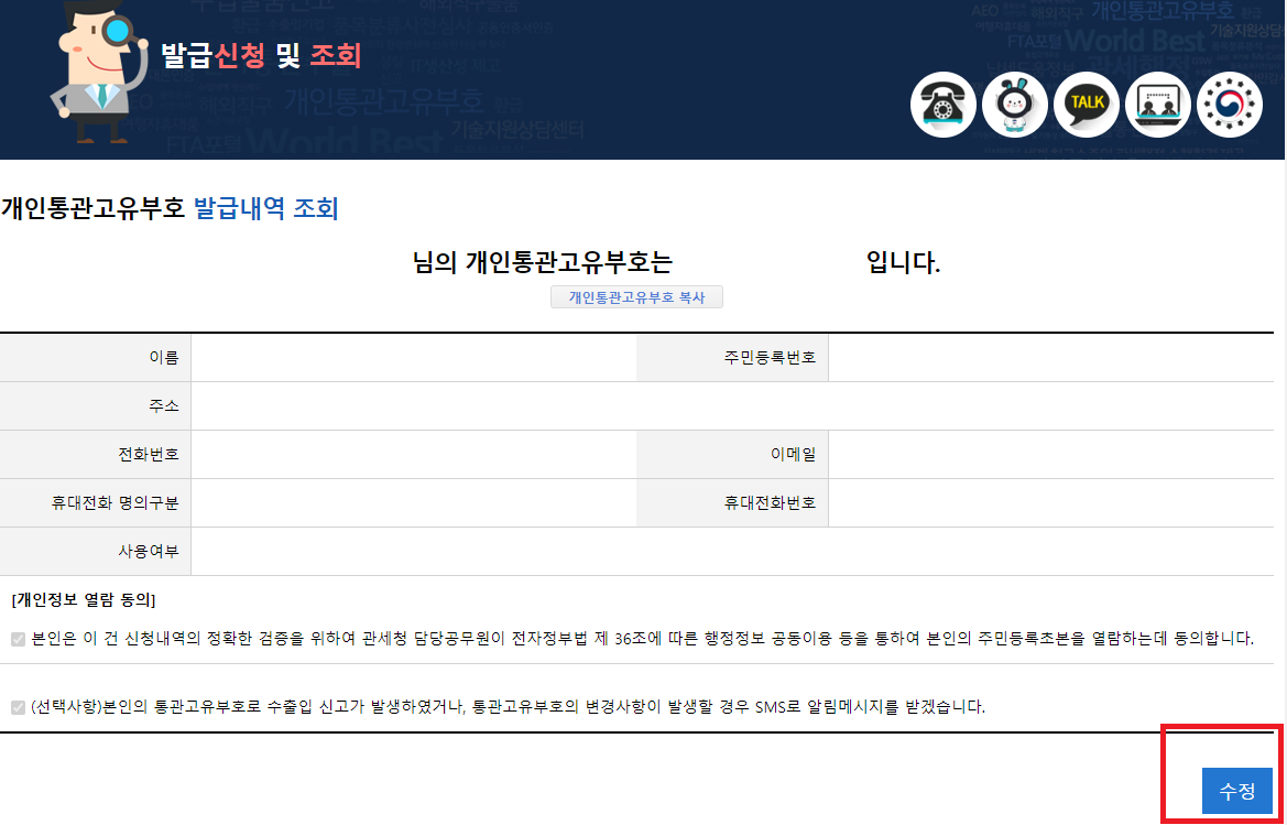 웬지 모르게 찝찝하니.. 개인통관고유부호를 재발급 해보자.